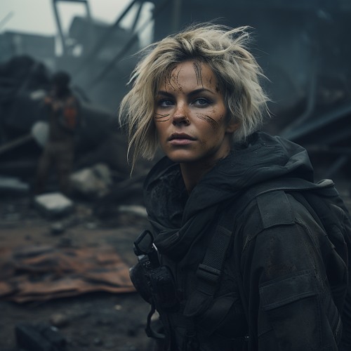 Phoebe Tonkin and Denise Richards mashup, young queen of intergalactic warewolves, fighting an army of hungry alien vampires, raw, frant frazetta style, ultra detailed face, full body view, slim, wide hips, barefoot, vintage movie poster, cosmic graveyard theme theme, zombies, demonic vampires, cinematic lighting, depth of field, text "Intergalactic Wolves" movie poster style, --ar 2:3 --v 6.0
