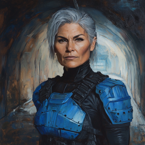Create a detailed and compelling full-body illustration of a futuristic female robot in the midst of battle within a post-apocalyptic world. Emphasize the color blue and infuse the character with a blend of advanced technology, feminine features, and unyielding strength, reflecting her resilience in the face of a ravaged world. Robot Description: Color Palette: Utilize a range of blue shades, from deep cobalt to vibrant turquoise, to create a visually striking and cohesive color scheme. Add accents of metallic silver, weathered gray, and muted tones to denote wear and tear from the harsh environment. Use strategic touches of glowing neon lights or energy accents to highlight key features. Design Style: Craft the robot with a humanoid, feminine physique, balancing grace and power. Incorporate sleek, metallic armor with intricate details, representing advanced technology. Integrate battle scars, worn textures, and rusted components to convey the challenges of survival in a post-apocalyptic setting. Pose: Depict the robot in a dynamic and fierce combat stance, capturing a moment of intense action. Whether she's wielding futuristic weaponry, engaging in hand-to-hand combat, or evoking a commanding presence, ensure the pose showcases her strength, agility, and determination. Environment: Situate the robot in a desolate and war-torn landscape. Illustrate the ruins of once-grand structures, overgrown vegetation, and remnants of advanced technology reclaimed by nature. Use atmospheric effects like dust clouds, smoke, or subtle lighting to enhance the dramatic impact of the scene. Narrative Element: Convey a sense of purpose and emotion in the robot's expression. Is she a lone survivor fighting for her people, a guardian protecting the last sanctuary, or a relentless [...]