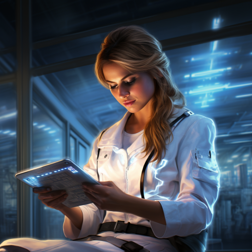beautiful female android in tight clothing, floating inside a tube with wires, sci-fi, fantasy,ergo proxy, futuristic --ar 2:3 --s 750 --niji 5