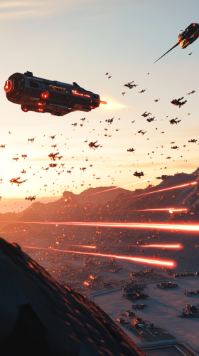 A futuristic battlefield scene with the Dragonfire laser defending a military base, intercepting a swarm of incoming enemy drones and missiles in a clear sky, surreal, hyper-realistic, Ultra HD --ar 9:16