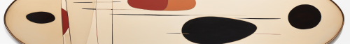 abstract oval art, midcentury modern, beige, off white, burnt red, one black oval outline --ar 8:1