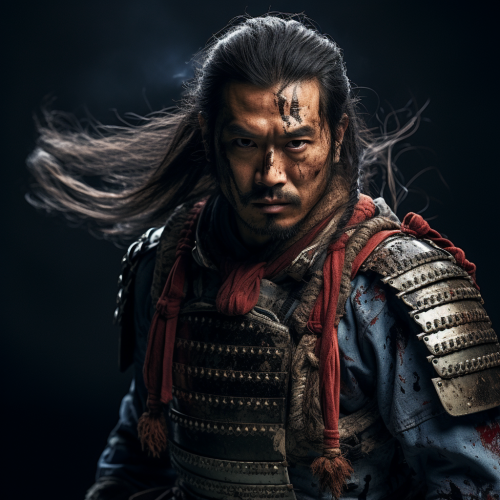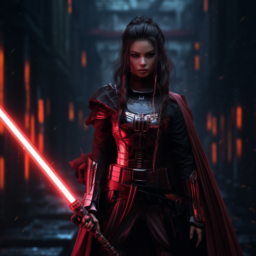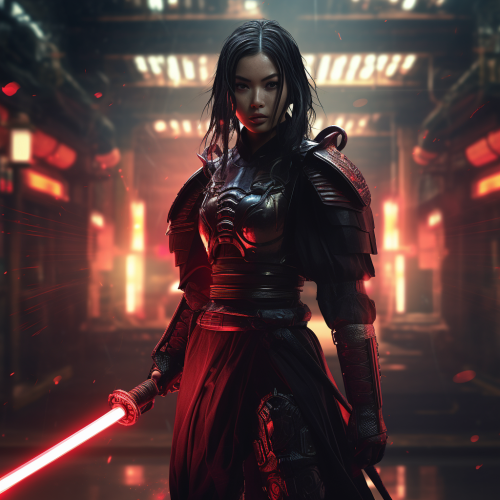 cyberpunk female Japanese dark samurai carrying red lightsaber