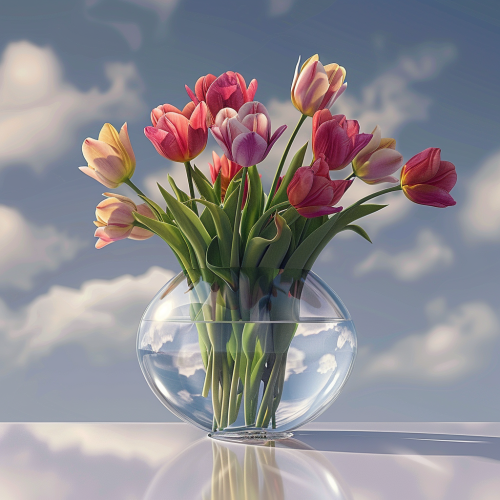 matte watercolor illustration [minimalist] centerpiece floral arrangement with [purple] [tulips] in a pedestal vase, [gray] academia, white background, symmetrical --style raw-DK1DC9Wk --s 50 --v 5.2