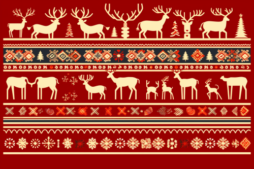 Christmas horizontal border patterns made out of a combination of glasses of beer, Santa, Reeindeer, elves and ornaments, bright colors, vector for t-shirt