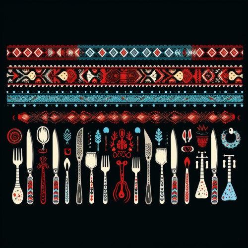Christmas nordic horizontal border patterns made out of a combination of glasses of beer, and BBQ dishes and utensils, bright colors, vector for t-shirt