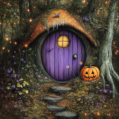 A glowing purple humanoid figure dressed as a mystical witch, complete with a flowing, ethereal robe and a pointed hat that glows with a soft purple light. The figure holds a glowing magical staff or wand, emitting radiant energy that swirls around in the form of magical runes and cosmic particles. The background is a dark, enchanted forest with twisted trees and shimmering mist, illuminated by the figure’s glow. The atmosphere is mystical, with elements of enchantment, magic, and a sense of powerful, spiritual energy emanating from the witch-like glowing figure. --ar 9:16 --s 750