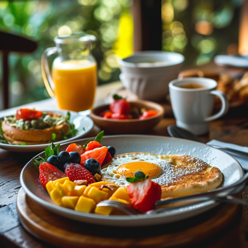 breakfast picture for restaurant, cinematic, photographic, high contrast 4K, 24mm, dof, f5.6 --style raw --v 6.0