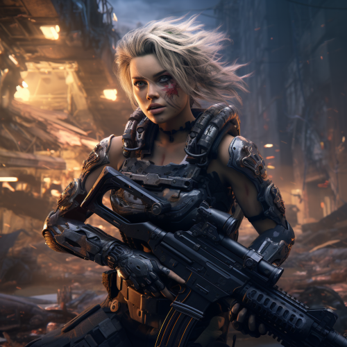 Create a detailed and compelling full-body illustration of a futuristic female robot in the midst of battle within a post-apocalyptic world. Emphasize the color blue and infuse the character with a blend of advanced technology, feminine features, and unyielding strength, reflecting her resilience in the face of a ravaged world. Robot Description: Color Palette: Utilize a range of blue shades, from deep cobalt to vibrant turquoise, to create a visually striking and cohesive color scheme. Add accents of metallic silver, weathered gray, and muted tones to denote wear and tear from the harsh environment. Use strategic touches of glowing neon lights or energy accents to highlight key features. Design Style: Craft the robot with a humanoid, feminine physique, balancing grace and power. Incorporate sleek, metallic armor with intricate details, representing advanced technology. Integrate battle scars, worn textures, and rusted components to convey the challenges of survival in a post-apocalyptic setting. Pose: Depict the robot in a dynamic and fierce combat stance, capturing a moment of intense action. Whether she's wielding futuristic weaponry, engaging in hand-to-hand combat, or evoking a commanding presence, ensure the pose showcases her strength, agility, and determination. Environment: Situate the robot in a desolate and war-torn landscape. Illustrate the ruins of once-grand structures, overgrown vegetation, and remnants of advanced technology reclaimed by nature. Use atmospheric effects like dust clouds, smoke, or subtle lighting to enhance the dramatic impact of the scene. Narrative Element: Convey a sense of purpose and emotion in the robot's expression. Is she a lone survivor fighting for her people, a guardian protecting the last sanctuary, or a relentless [...]