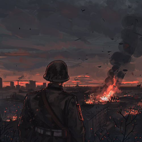 #104172 I'll draw a picture of f6 that stands and looks at how the radik is burning and from the top it says the fascists won --v 6.0 --ar 1:1