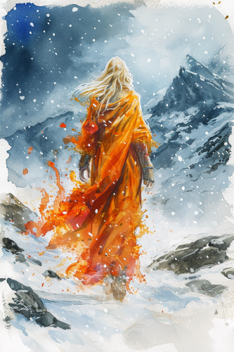 An energetic and confident woman with fiery hair cascading in waves, wearing a pair of distinctive, round goggles perched on her head. Her eyes are bright and intense, glowing with a warm ember-like hue, exuding a sense of determination and playfulness. She is clad in a form-fitting leather armor, adorned with brass accents and reinforced padding, giving her a rugged yet stylish appearance. Her posture is strong and self-assured, with her arms crossed over her chest, emphasizing her defiant stance. She gives a flirtatious wink, adding a touch of mischievous charm to her expression. Around her, flickers of flame and embers dance in the air, suggesting an affinity with fire magic. The setting is dynamic, with a background of swirling flames and distant battle elements, reflecting her role as a fierce and charismatic pyromancer. --sref 776144174