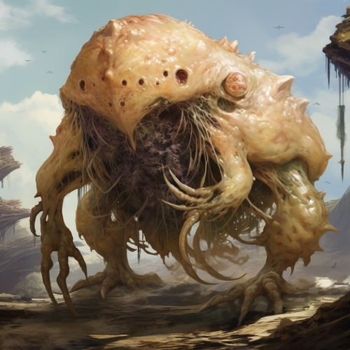 a small portion of a gigantic alien titan with toad-like skin and small circular open cavities filled with crusty growths all over its skin