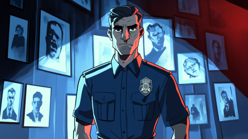 a police officer is portrayed with an unwavering determination and intense focus evident in their facial expression. Their eyes, sharp and alert, are fixed on an unseen point in the distance, showcasing their unwavering dedication to their duty. The furrowed brow and clenched jawline emphasize the seriousness and resolve with which they approach their responsibilities. The officer’s features are highlighted by the crisp and professional appearance of their uniform, further underscoring their commitment to maintaining law and order.