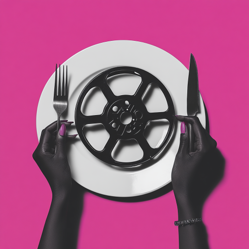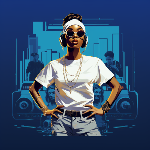 movie poster design, female hip hop producer wearing a clean empty white t-shirt