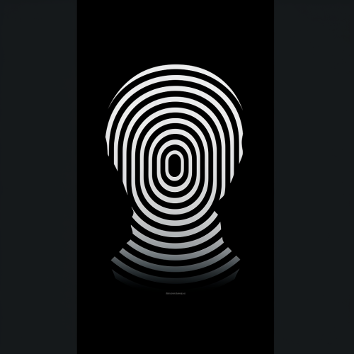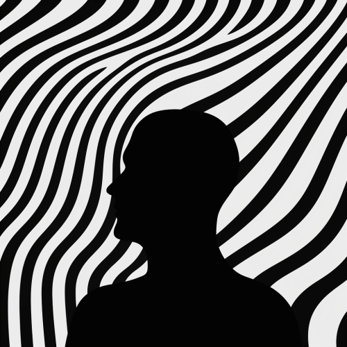 apeirophobia, psychological thriller film poster, human head side profile radiates waves, ripple effect, mental, neo-noir, simple, minimalist, white, black --v 5.2