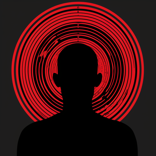 apeirophobia, psychological thriller film poster, human head side profile radiates concentric circles, ripple effect, side profile, mental, neo-noir, simple, minimalist --v 5.2