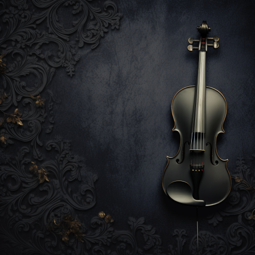 Blank dark-themed, background for the concert poster, baroque theme, pattern background, violin in the corner --v 5.2