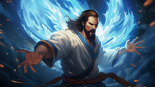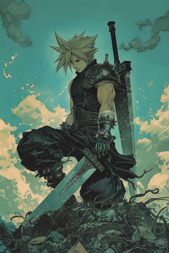 Grimdark mystic ominous master cryptid from Final Fantasy VII wielding a huge magic knife, anime style, high fantasy, digital art, masterpiece painting, ultra detailed, ultra high definition, 8K resolution, 3D shading, superior quality, cover illustration, complex design, luminous highlights,rich vibrant colours, hyperrealistic, meticulously hyper detailed, high contrast, artstation --niji 5