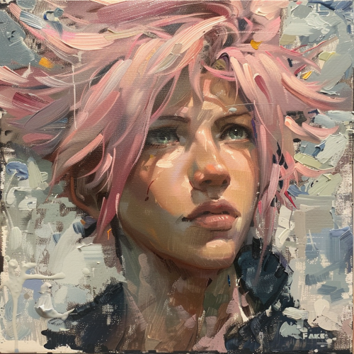 Generate an image that depicts a female elf warrior with blue hair in a Final Fantasy concept art style. ::