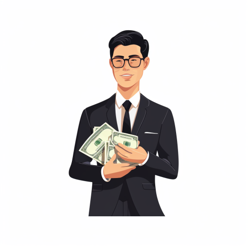 investor with suit and tie, holding some banknotes, simple vector illustration business, white background --v 5.2