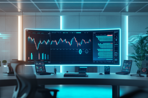 Scene representing interest rate changes, a financial chart with peaks and troughs displayed on a computer monitor, indicating market volatility, modern office setup, minimal decor, conveying a sense of economic instability or variation. Photorealistic, highly detailed, 8K resolution --ar 3:2 --v 6.1 --style raw