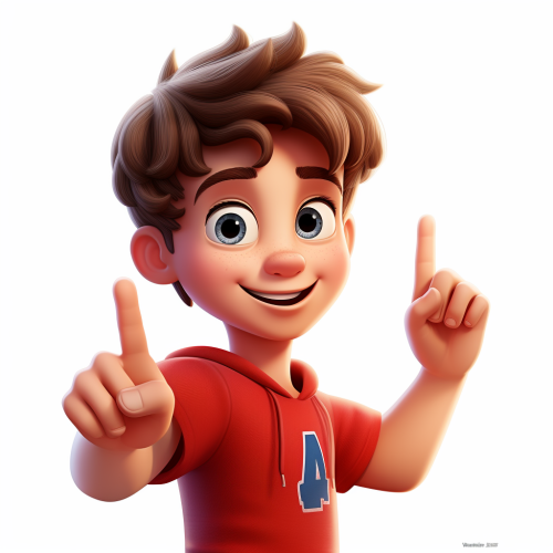 Cartoon boy pointer fingers up, hazel eyes, red top, laughing so hard, 4K, HD, dreamworks, white backgroun, Looking into camera, facing