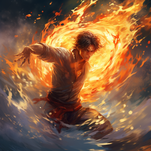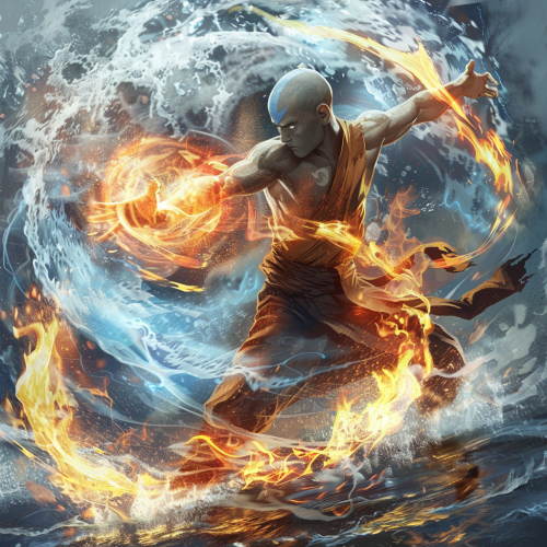 aang from avatar realistic, hes bending air, water, fire and earth,