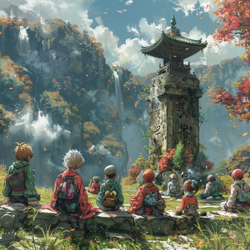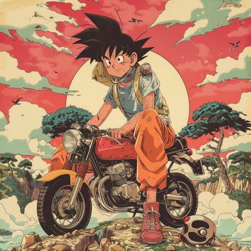 a tribute to the Creator of the manga Dragon Ball : Akira Toriyama, Japanese manga design, Dragon ball Z characters around him ( like Son Goku and Vegeta), Dragon Ball Z theme, realistic, fluo colours, excellent quality, beautiful lighting, Ultra realistic, top view camera, UHD, 8k --v 5.1 --ar 3:2