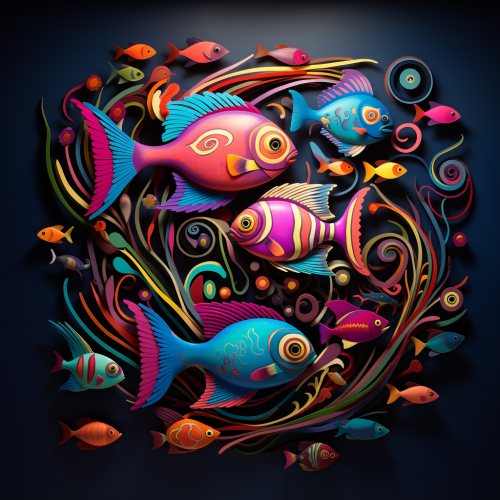 Seamless pattern: fish. Colorful natural background prints with organic floral elements and hand-painted decor in soft, muted and earthy tones: orange, green, yellow. with elements such as black dots and lines. Sloping lines, rounded edges. Abstract drawings of solid colors. beige background. Seasonal printable patterns. Vector image --v 6.1