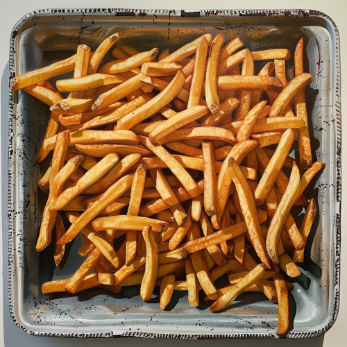 a bunch of very delicious looking fries, but they are hang on a wall in a frame --v 6.0