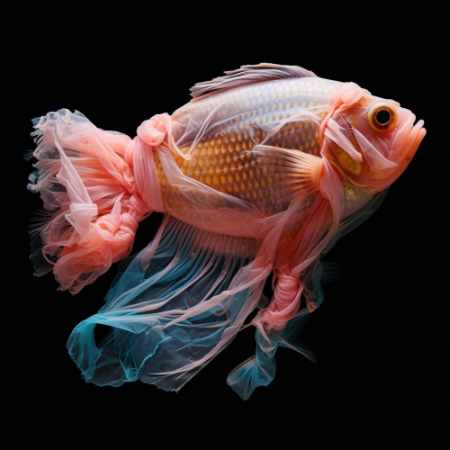 trout with a black and white skunk pattern, swimming under water in a river, realistic, ultra high resolution, product photo