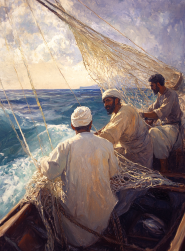 fishing boat , with tom cruise fishing and catching a marlin fish, 3 people in the background on the boat