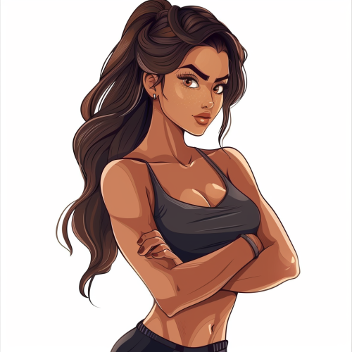 femme musclée vecteur, type méditéranéen, cheveux bouclés brune