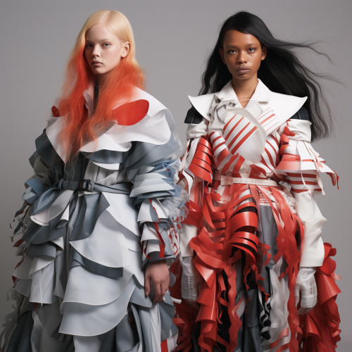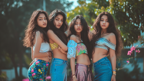 five beautiful medieval women, cyberpunk, fashion model aesthetic, fashion model photo shoot, --ar 5:2 --style raw --uplight