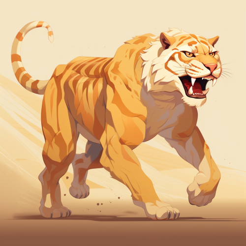 GENERATE A GOLDEN SABERTOOTH TIGER FLAT STYLE ART WALKING , FLAT ART, VECTOR ART,