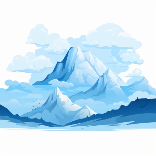 kawaii style Isolated individual blue - grey mountains on flat white background simple low detailed, on plain background, cartoonish, no edges, childrens book style, colored, flat color, simple textures, flat shading, flat color style, textured 2D, illusturation style
