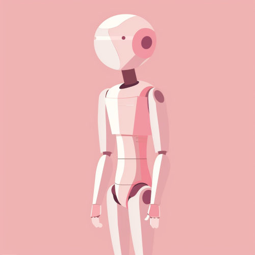 A vectorized silhouette of a robot character, designed in a soft, pastel pink color with smooth, rounded features. The robot has a warm, inviting appearance, with a focus on character rather than futuristic elements. This design is perfect for creating a friendly and approachable brand presence in the medspa industry. flat design, soft pink palette, minimalistic, character-focused, vector art --ar 1:1 --v 6.0