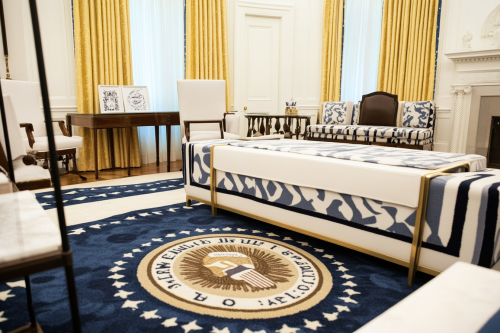 photo of White House Oval Office furnished with IKEA furniture and Presidential Seal in carpet::1.5 expensive furniture, fancy furniture, polished furniture::-0.5 empty::-0.5 --ar 3:2 --style raw --stylize 0 --v 6.1