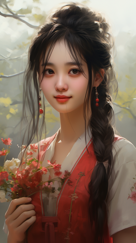 A young Chinese girl's psychic energy creates a healing aura which benefits the health and cellular well being of some of the adults around her. Ethereal, energetic, spiritual, healing --ar 16:9