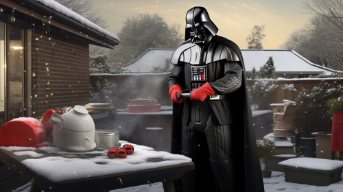 goldendoodle in a star wars christmas, wookie family scene, life day,