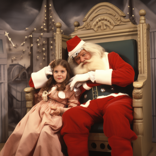 han and leia taking cheesy Christmas mall photos with Santa Clause, photorealistic, awkward, circa 1972 --q 0.5