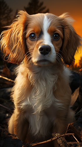 art nouveau portrait of a King Charles Cavalier Spaniel - very detailed and refined. Use the style of Alphonse Mucha using a fall palette of deep orange, scarlet, dark green, gold, and violet - use leaf patterns in the borders. --v 5.0 --s 750