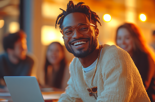 A massive crowd of animated, joyful, diverse people, all laughing and smiling, in a Pixar-like movie style, with soft, warm lighting and vibrant, cartoonish colors, focusing on the energy of excitement and happiness --v 5.0 --ar 16:9 --stylize 700