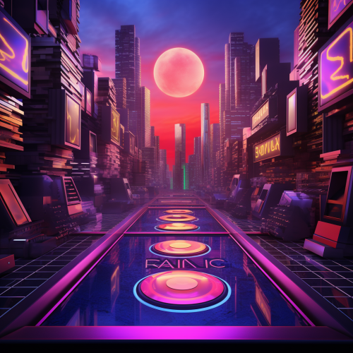 Concept: The album art concept centers around a dreamy and surreal night sky, combining elements of celestial beauty and urban mystique. Central Image: In the center of the artwork, place a mesmerizing celestial object that emits an otherworldly glow. This could be a nebula, a cosmic whirlpool, or an abstract celestial formation. This central image represents the cosmic and mysterious aspect of your music. Cityscape: Below the celestial object, depict a sprawling, futuristic cityscape that stretches into the horizon. Neon lights, skyscrapers, and complex urban architecture dominate the lower half of the artwork. This represents "Enmity City" and adds an element of urban complexity to the scene. Neon Yearning: Incorporate elements that convey yearning, such as a lone figure on a rooftop, gazing up at the celestial object, lost in contemplation. This figure can be a silhouette to maintain an air of mystery. Tangled Desires: Suggest the theme of tangled desires by including abstract, intertwined elements like ribbons of light or energy flowing through the city and into the celestial object. Depths of Mystery: Add an aura of mystery by veiling parts of the city in a soft, enigmatic mist or haze, leaving certain details obscured and open to interpretation. Color Palette: Utilize a predominantly dark and atmospheric color palette with deep blues, purples, and blacks to convey the nighttime setting. Contrast this with vibrant neon hues for the cityscape, creating a visually striking juxtaposition. Typography: Choose a modern, sleek, and slightly futuristic font for the album title and track names, harmonizing with the urban and celestial elements