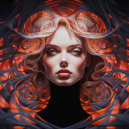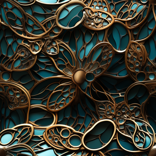 The Perfect Enigma of Chromostereopsis Geometric Art, Close-up Intensity, Paper-quill Etching-on-Ceramic Tile, Calligraphic Lines, Bernini Style Bronze, Kandinsky Style, James Turrell Light, Glossy Reflections, Flat vector image, Intricate Surface Details, Embossed Bryce 3D --tile --chaos 8 --stylize 250 --style raw --v 6.0