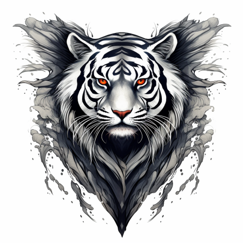 a tattoo design of black and white tiger with wings make it simple and cartoony