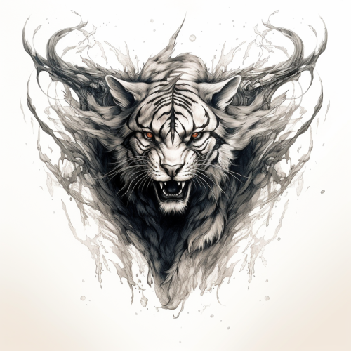 a design of black tatoo of a flying tiger. Make it with one connected line and give the tiger wings.