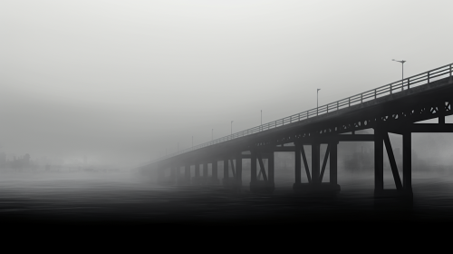 long bridge stretching off into the distance, gray fog, 2d illustration, creepy --ar 16:9