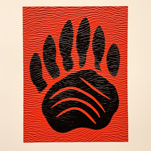 black panther paw red background minimal modern linocut print - - ar 15:15