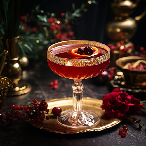 Abstract geometric style. charleston South Carolina decorated for Christmas. Cocktails and beautifully presented drinks. Bakeh style. Split depth photography. white lights. blurred background. High-end. Stylish. Important. Mysterious. Black and white photography with red and green festive color splash. Worm’s eye view. Very minimalist. Clean lines. Shot with a Pentax. K-3 III Monochrome. --ar 16:9 --q 0.5 --s 750