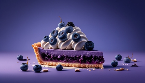 a delicious blueberry tart on purple background. Cinematic , Color Grading, street Photography, Photography, Photoshoot, Shot on 70mm lens, Depth of Field, DOF, Tilt Blur, Shutter Speed 1/1000, F/22, White Balance, 32k, Super-Resolution, Megapixel, Pro Photo RGB , VR , Lonely, Good, Massive, Half rear Lighting, Backlight, Natural Lighting, Incandescent, Optical Fiber, Moody Lighting, Cinematic Lighting, Studio Lighting, Soft Lighting, Volumetric, Conte-Jour, Beautiful Lighting, Accent Lighting, Global Illumination, Screen Space Global Illumination, Ray Tracing Global Illumination, Optics, Scattering, Glowing, Shadows, Rough, Shimmering, Ray Tracing Reflections, Lumen Reflections, Screen Space Reflections, Diffraction Grading, Chromatic Aberration, GB Displacement, Scan Lines, R a y Traced, Ray Tracing Ambient Occlusi on, Anti-Aliasing, FKAA, TXAA, RTX, SSAO, Shaders, OpenGL-Shaders, GLSL-Shaders, Post Processing, Post-Production, Cell Shading, Tone Mapping, CGI, VFX, SFX, insanely detailed and intricate , hyper maximalist , elegant, hyper realistic, super detailed, dynamic pose, photography, Hyper realistic, volumetric, photorealistic, ultra photoreal, ultra-detailed, intricate details, 8K, super detailed, full color, ambient occlusion, volumetric lighting , high contrast , HDR --v 4 --ar 16:9